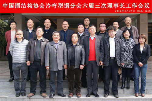3月25日,中國鋼結構協會冷彎型鋼分會六屆三次理事長工作會議在江蘇揚州召開,本次會議討論并通過了冷彎型鋼分會2013年工作安排、人員調整、協會管理、吸收新會員等議案。會議由冷彎型鋼分會副理事長、武鋼集團江北公司副總經理萬國勝主持,出席會議的有冷彎型鋼分會理事長韓靜濤,冷彎型鋼分會副理事長、上海寶鋼型鋼有限公司總經理周偉鋼,冷彎型鋼分會副理事長、泰安科諾型鋼股份有限公司董事長錢占緒,冷彎型鋼分會副理事長、上海佳藝冷彎型鋼有限公司董事長朱繼昌,冷彎型鋼分會副理事長、鋼鐵研究總院鋼藝所所長馮光宏,冷彎型鋼分會副理事長、香港和利鋼鐵有限公司總經理黎鍔威,冷彎型鋼分會副理事長、南京中輕機械有限公司總經理喻兵,冷彎型鋼分會副理事長、石家莊軸設機電設備有限公司董事長紀山,參加會議的還有:上海上海佳藝冷彎型鋼有限公司總工江巖、副總黃宏江,武鋼集團漢口軋鋼廠副廠長賈建輝、市場開發部長葉掀亮,南京萬匯冷彎鋼板樁有限公司副總經理王圣清,香港和利鋼鐵有限公司副總經理曾慶龍,《冷彎型鋼》雜志副主編張登科,冷彎型鋼分會工作總部汪一蘭等共21人。
